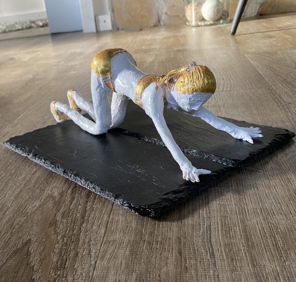 Skulptur aus Modeliermasse mit Gold und Acryl bemalt